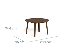 Spisebordet måler Ø120 cm uden tillægsplader, hvilket gør det ideelt til hverdagsbrug i mindre rum. Med de medfølgende tillægsplader á 50 cm kan bordet forlænges op til 220 cm, så du nemt kan samle familie og venner omkring bordet.