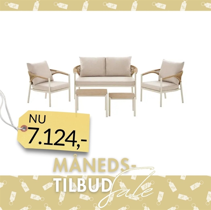 Sand- og naturfarvet loungesæt til rolig uderumsindretning