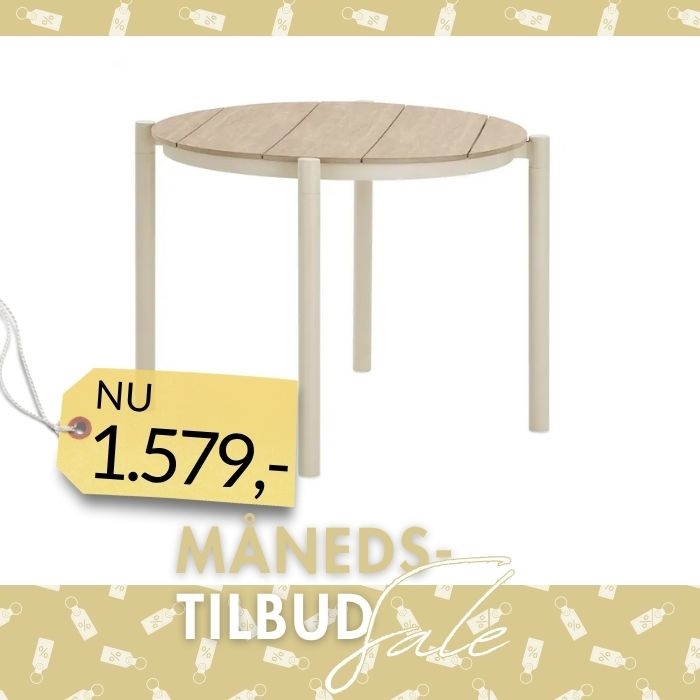 Abela spisebord er et stilrent og funktionelt havebord, der gør det nemt at skabe en hyggelig spiseplads på terrassen, altanen eller i haven. Det runde design i sand og natur giver bordet et let og indbydende udtryk, som passer perfekt til moderne udendørs indretninger. Med sin kompakte størrelse er bordet ideelt til mindre uderum eller som en fleksibel løsning, hvor pladsen skal udnyttes optimalt.