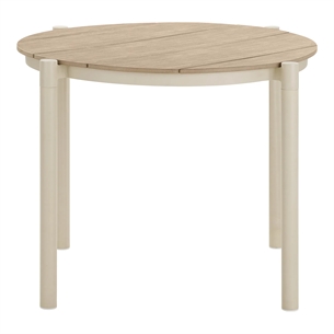 Bordpladen i nonwood har et flot træinspireret look, der tilfører varme og naturlighed til designet. Samtidig kræver materialet minimal vedligeholdelse, hvilket gør bordet velegnet til hverdagsbrug i uderummet. Farvekombinationen sand og natur understøtter det rolige og moderne udtryk.