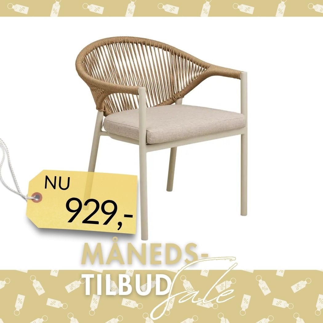 Abela spisebordstol er et stilfuldt og praktisk valg til dig, der ønsker komfortable siddepladser på terrassen eller i haven. Med sit lette design og den harmoniske farvekombination i sand og natur passer stolen perfekt ind i moderne udendørs indretninger. Det naturlige udtryk gør den nem at kombinere med forskellige haveborde og øvrige havemøbler, så du kan skabe en personlig og indbydende spiseplads under åben himmel.
