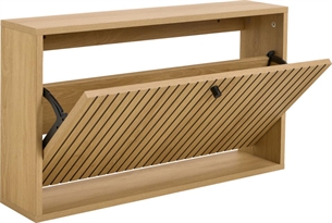 Hold din entré organiseret og stilfuld med Albany skoskab, der kombinerer funktionalitet og moderne design. Skabet er fremstillet i eg ru melamin, hvilket giver en naturlig træstruktur med en varm og indbydende finish. Med sit slanke og væghængte design passer dette skoskab perfekt til mindre rum, hvor gulvpladsen skal optimeres.