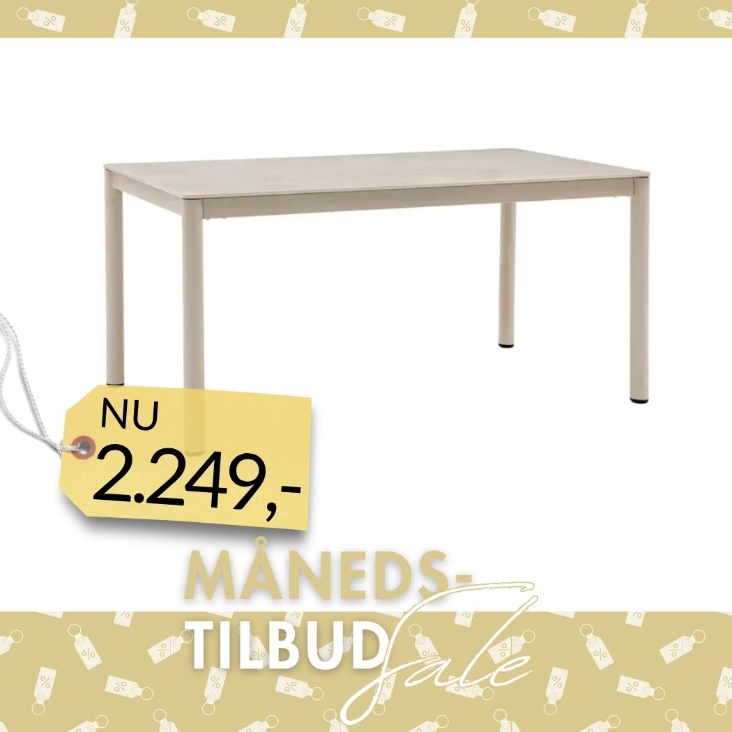 Den sandfarvede nuance giver Alcudia spisebord et lyst og afslappet udtryk, som passer ind i mange typer udendørs indretning. Bordet fremstår elegant og tidløst, hvilket gør det nemt at kombinere med havestole i både rattan, tekstil eller metal.
