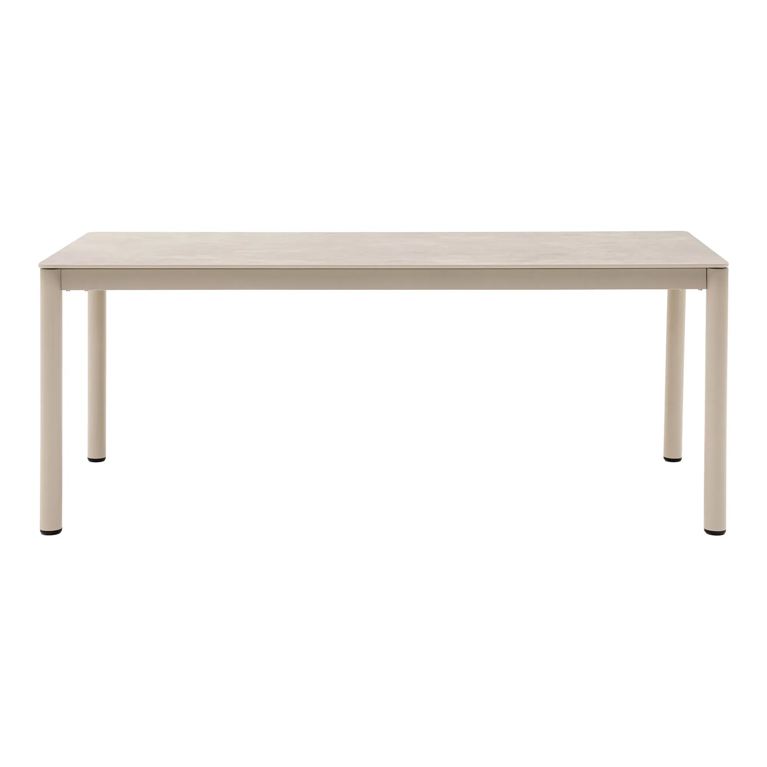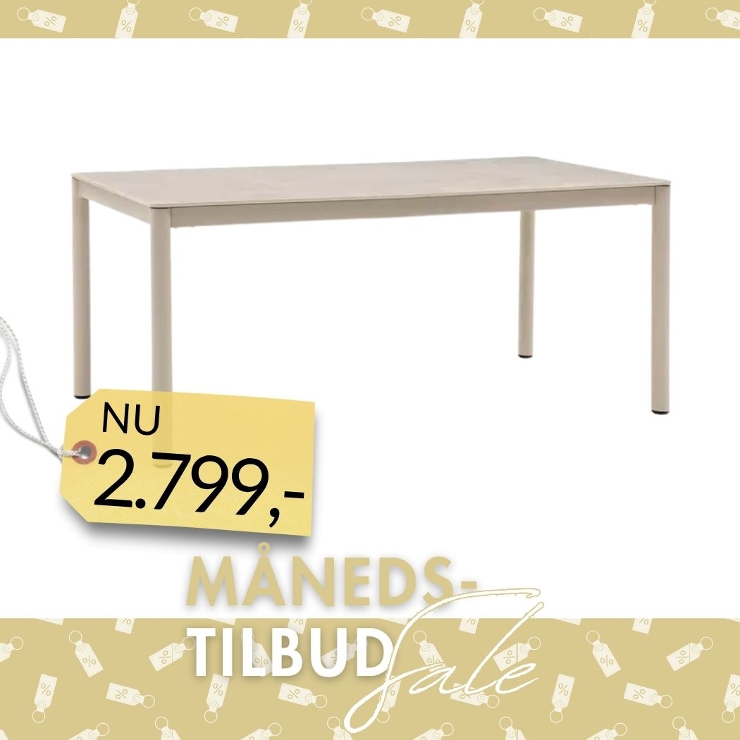 Den sandfarvede finish giver Alcudia spisebord et lyst og afslappet udtryk, som harmonerer med både træterrasser, fliser og grønne omgivelser. Bordet virker moderne og tidløst på samme tid, hvilket gør det nemt at kombinere med havestole i forskellige materialer og farver.
