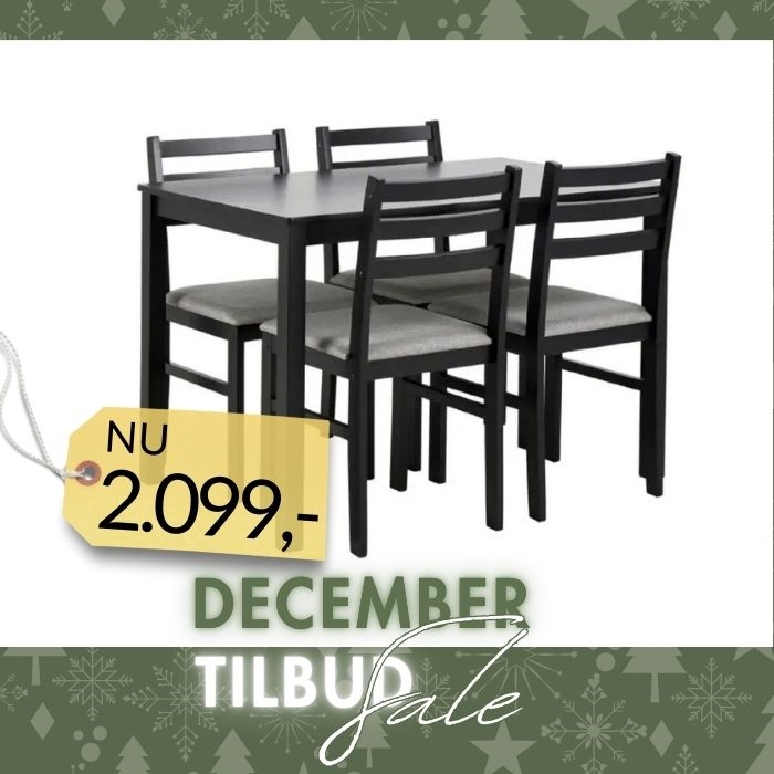 Med sit kompakte design er Alicante spisebordssæt ideelt til små spisestuer, køkkener eller lejligheder. Den sorte bordplade kombineret med de lysegrå stole skaber et elegant og tidløst udtryk.