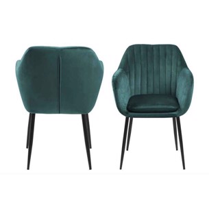 Emilia Spisebordsstol med Armlæn – Flaskegrøn Vic Stof & Sort Stålstel