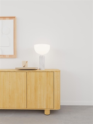 Den brede topplade giver samtidig mulighed for at fremvise dekorative elementer som lamper, planter eller personlige genstande.