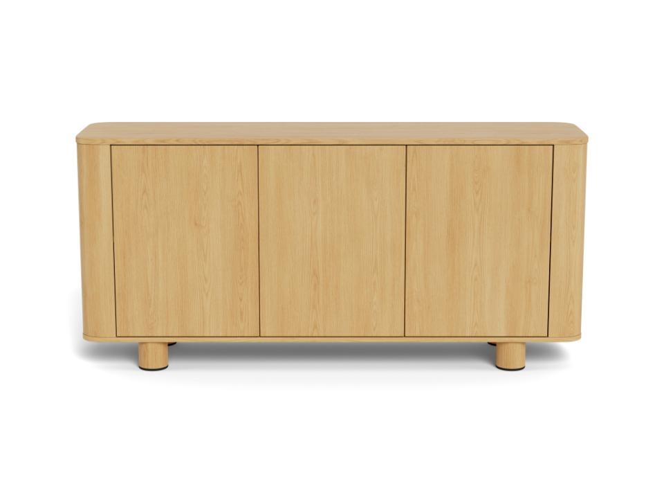 Skænken er indrettet med tre låger og tre hylder, hvilket giver god plads til opbevaring af service, tekstiler, bøger eller andre hverdagsting. Den rummelige opbygning gør skænken ideel til både stue, spisestue eller entré, hvor der ønskes funktionel opbevaring i et stilrent design.