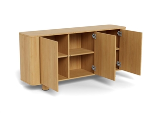 Atmore skænken er udstyret med en praktisk push-to-open funktion, som gør det nemt at åbne lågerne uden synlige greb. Dette understreger det minimalistiske design og giver skænken et rent og moderne udtryk.