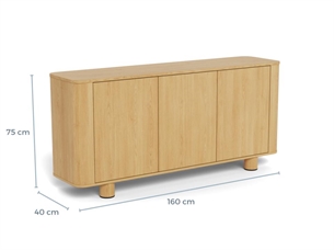 Atmore skænken kombinerer funktionalitet og æstetik på elegant vis. Det naturlige trælook og det minimalistiske design gør skænken til et oplagt valg for dig, der ønsker et moderne møbel med god opbevaringsplads.