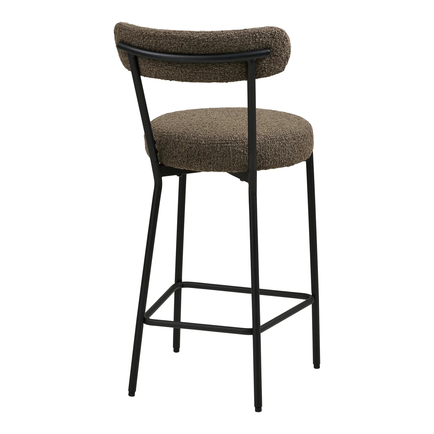 Badalona barstol forener komfort og design i en moderne helhed. Det brune bouclé-stof skaber en varm og luksuriøs tekstur, mens de sorte metalben giver et stilrent, industrielt udtryk. Med en sædehøjde på 65 cm er denne stol særligt velegnet til køkkenøer, bardiske eller høje spiseborde.