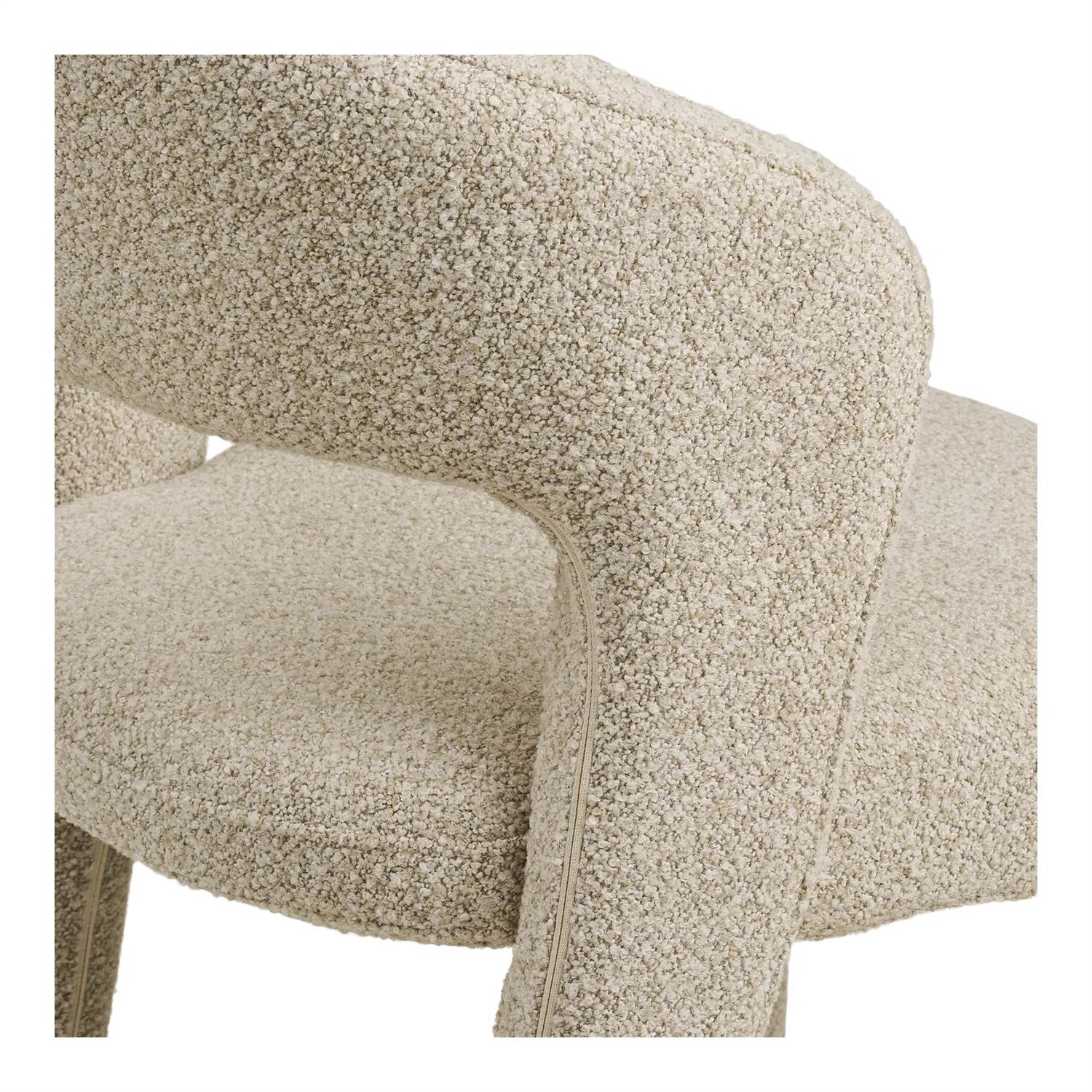 Den sandfarvede polstring bidrager til et roligt og harmonisk udtryk og gør stolen nem at kombinere med forskellige spiseborde og farvetoner i rummet.