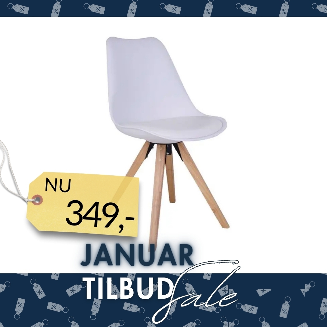 Benene er fremstillet i gummitræ, en træsort kendt for sin stabilitet og gode styrke. Det naturlige træ tilfører varme og karakter til stolens design og skaber en harmonisk kontrast til det hvide sæde. Kombinationen af hvid og træ er klassisk indenfor skandinavisk indretning og er en af grundene til, at denne type stol er så populær i mange hjem.