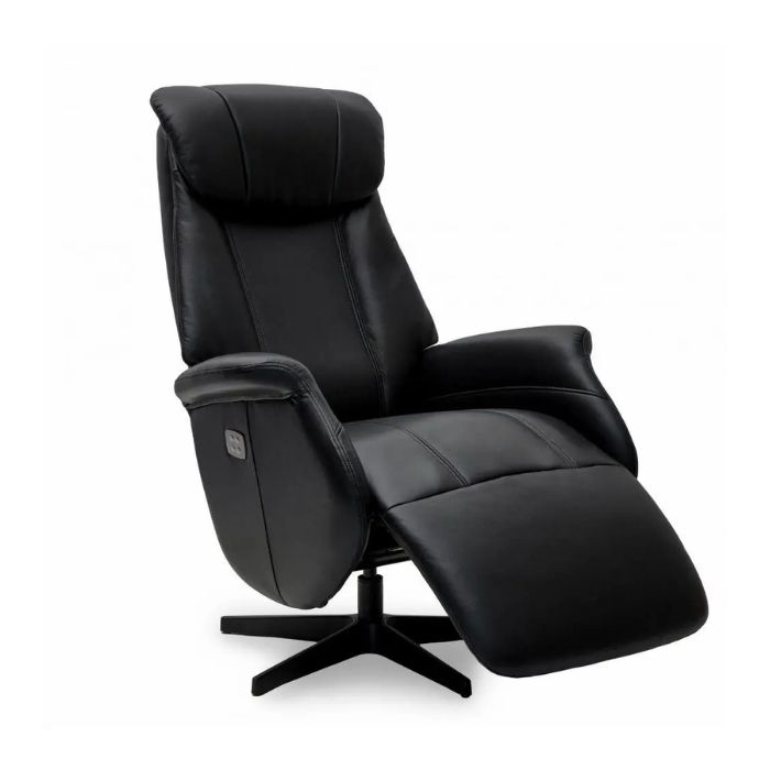 Bonanza hvilestol i sort læder med elektrisk funktion og drejefod