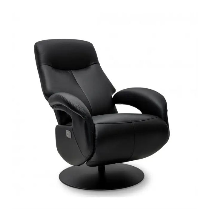 The Bull hvilestol i sort læder med elektrisk funktion og sort metalstel