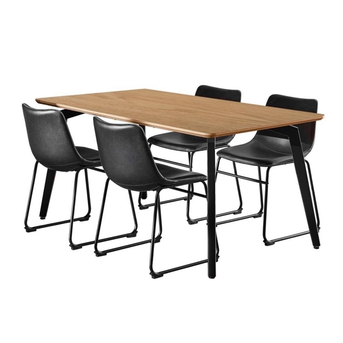 Cadiz rektangulært spisebordssæt 160x90 cm med 4 stole i sort PU er et stilrent og moderne valg til dig, der ønsker en elegant og funktionel spiseplads. Kombinationen af det varme trælook og de sorte stole skaber et tidløst udtryk, der passer perfekt ind i både moderne og klassiske hjem.
