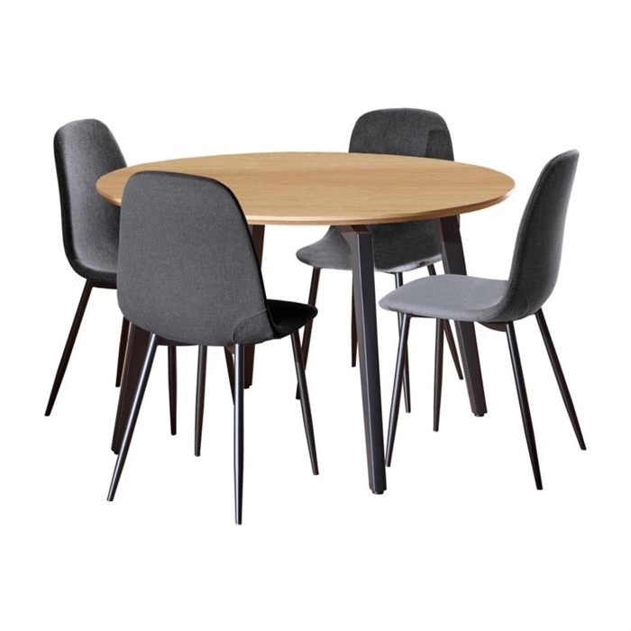 Cadiz spisebordssæt, rund m/4 stole i mørkegrå