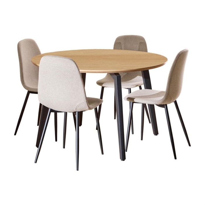 Cadiz spisebordssæt, rund m/4 stole i Nesis beige