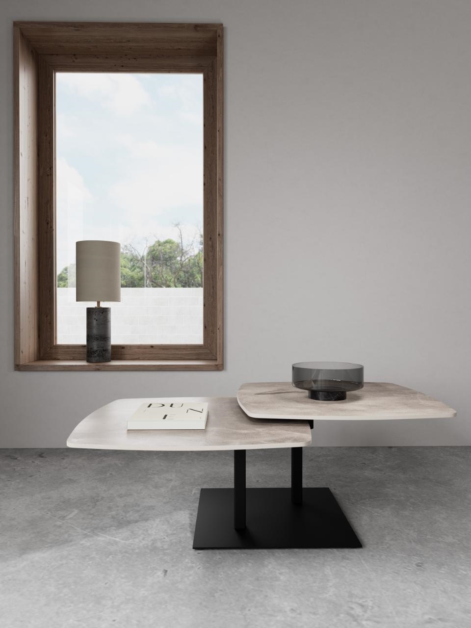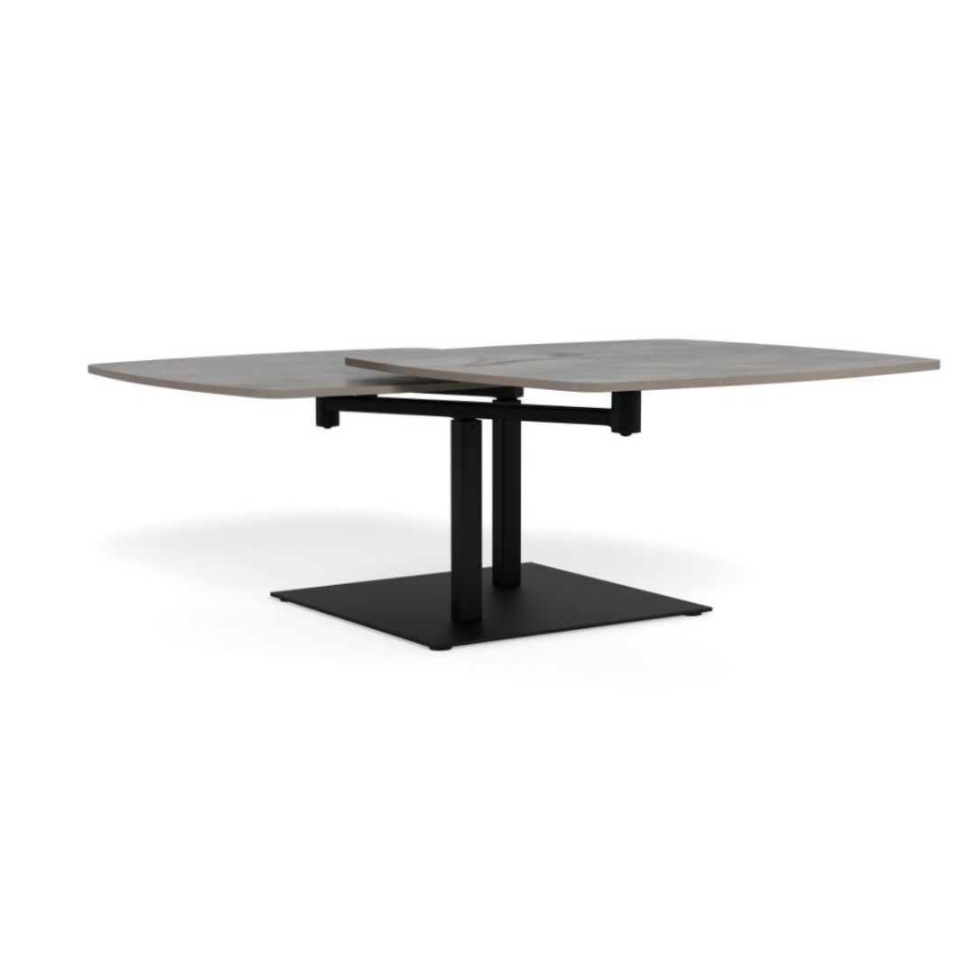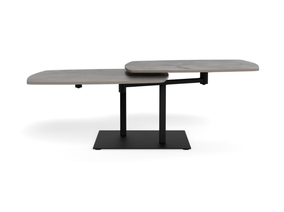 Carballo sofabord er et moderne og funktionelt sofabord, der kombinerer fleksibilitet med et stilrent design. Bordpladen er udført i grå Batis poleret keramik, som giver et eksklusivt og roligt udtryk, mens det mat sorte ru pulverlakerede stålstel i diskform understøtter et minimalistisk og moderne look. Med rotationsudtræk får du et sofabord, der nemt kan tilpasses hverdagens behov.
