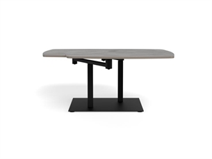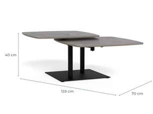 Carballo sofabordets stel er fremstillet i stål og afsluttet med mat sort ru pulverlakering, som giver stabilitet og et moderne udtryk. Den integrerede rotationsudtræksfunktion gør det muligt at dreje og udvide bordpladen, så du får ekstra plads, når behovet opstår – perfekt til både hverdag og gæster.