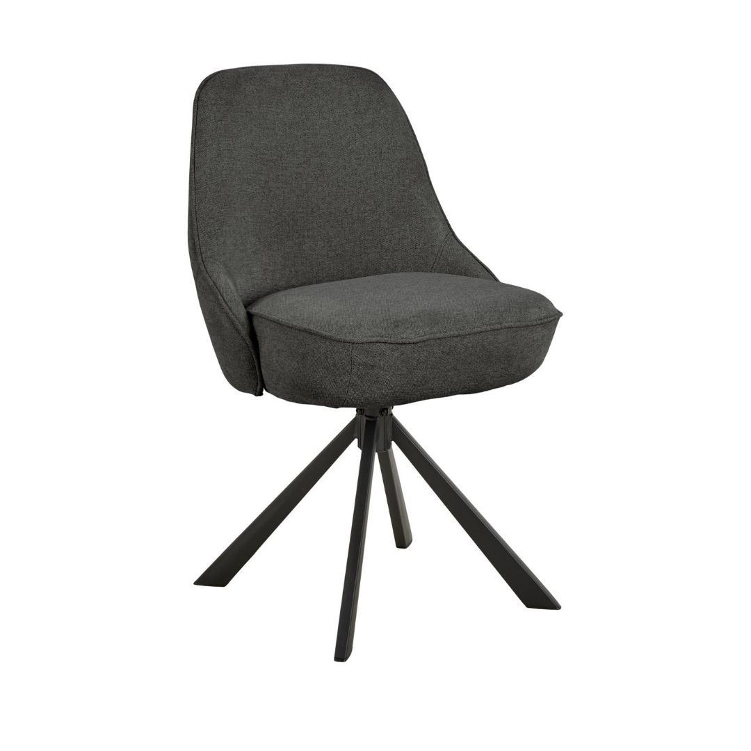 Kombinationen af mørkegråt stof og sort stålstel giver stolen et moderne og stilrent udtryk, der passer perfekt ind i både skandinaviske og industrielle indretninger. Den 4-stjernede base tilfører et let og elegant look, samtidig med at den sikrer stabilitet.