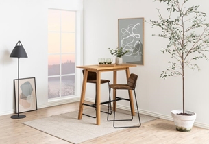 Med sin højde på 105 cm passer Chara barbordet perfekt sammen med barstole og fungerer som et stilfuldt alternativ til et traditionelt spisebord. Det er velegnet til både køkken, stue eller mindre spiseområder, hvor pladsen skal udnyttes optimalt.