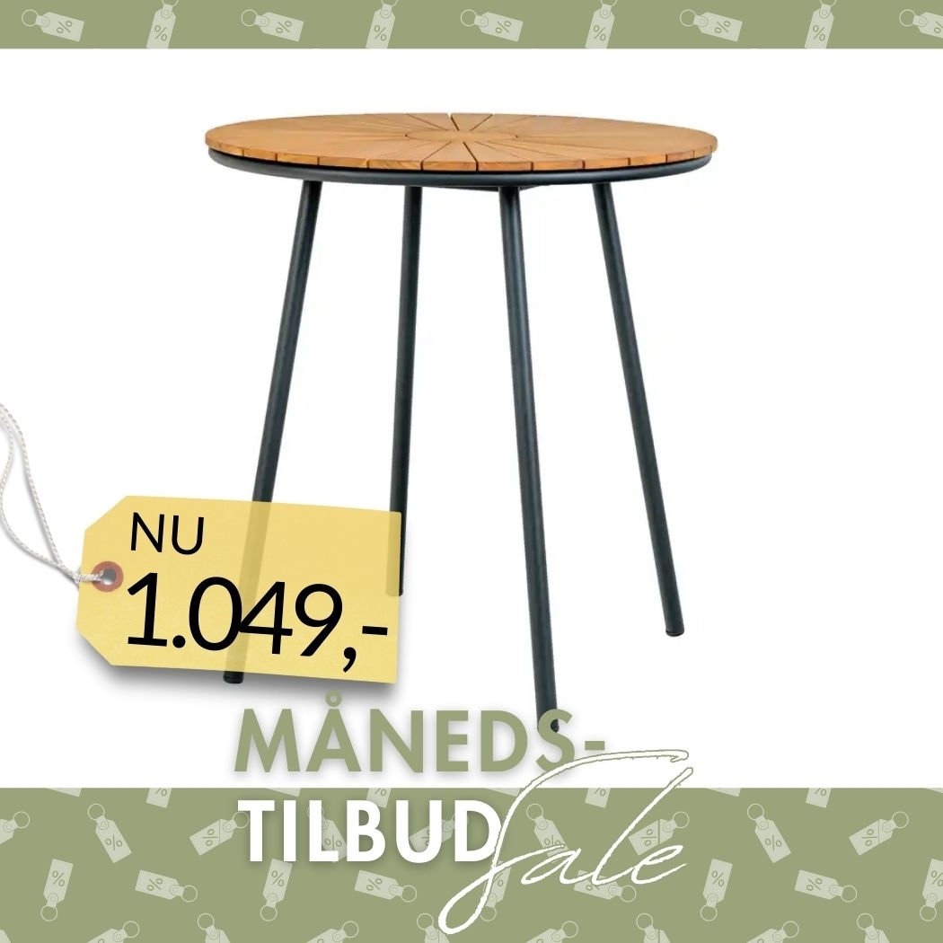 Cleveland CafébordCleveland Cafébord, teak bordplade, natur, sorte ben, ø70x74 cm Materiale:Teak, Metal Steltype:Me