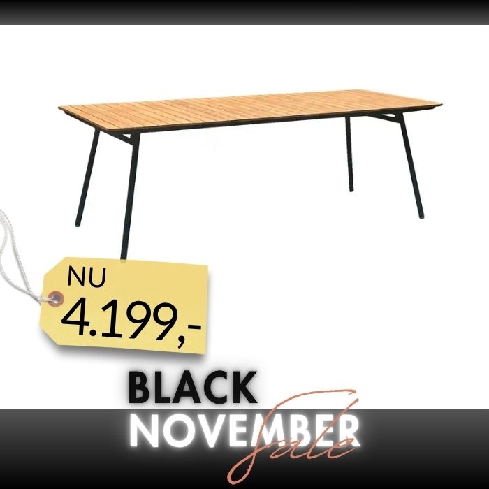 Cleveland Spisebord, havemøblerCleveland teak bordplade, natur, sorte ben. Havebord 90x220 cm Luksus overtræk der kan bruge