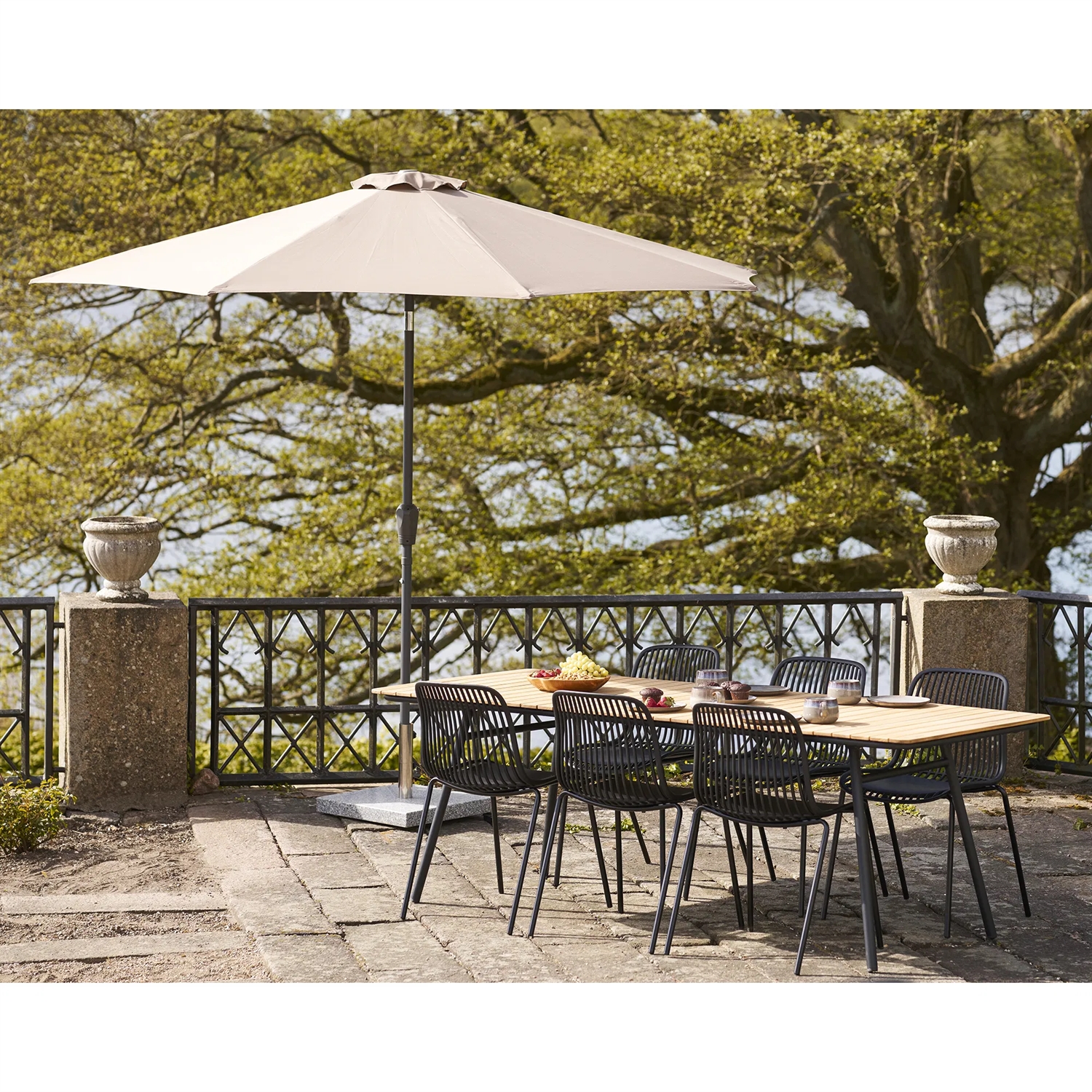 Cleveland spisebordet kombinerer varme trætoner med en moderne industriel stil, hvilket gør det perfekt til både klassiske og nutidige udemiljøer. Den store bordplade giver masser af plads til middage, grillfester og hyggelige stunder i solen.