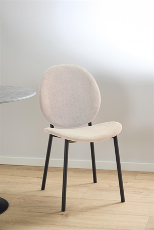 Cliff spisebordsstolen er et perfekt valg til dig, der ønsker en stilren og komfortabel spisebordsstol. Stolen er betrukket med blødt Caso stof i beige, der giver et elegant og indbydende udtryk. Det mat sorte ru pulverlakerede stålstel skaber en flot kontrast og sikrer en stabil konstruktion. Som en ekstra stilfuld detalje har stolen en synlig lynlås på ryggen, der tilfører et moderne touch.