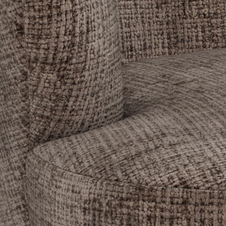 Det bløde Juto stof har en behagelig struktur og en afdæmpet støvbrun nuance, der passer perfekt ind i både moderne og mere klassiske hjem. Det brede sæde og de afrundede linjer skaber en indbydende loungestol, hvor du nemt kan læne dig tilbage og slappe af.