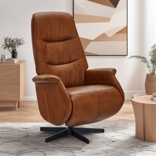 Bestil Delta recliner i brun læder hos Møbellageret – en alsidig og komfortabel lænestol med manuelt ryglæn, justerbar nakkestøtte og elegant design. Et ideelt valg til moderne hjem med fokus på både komfort og æstetik.