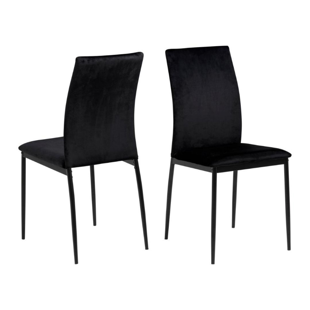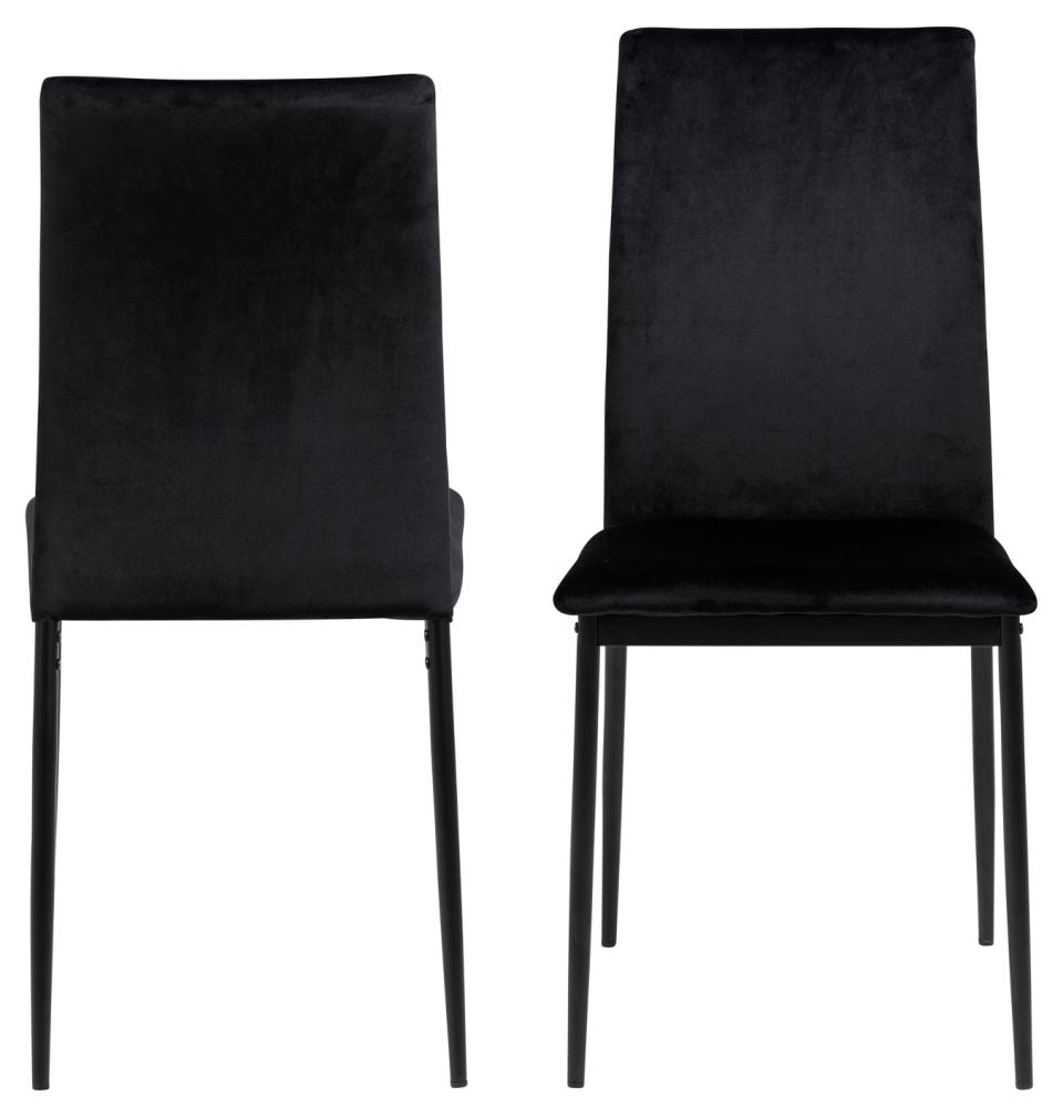 Demina spisebordsstol i sort velourlook er et elegant og moderne valg til dig, der ønsker en stilren spiseplads med et eksklusivt touch. Med sit minimalistiske design, slanke linjer og bløde stof tilfører stolen både komfort og æstetik til din indretning.