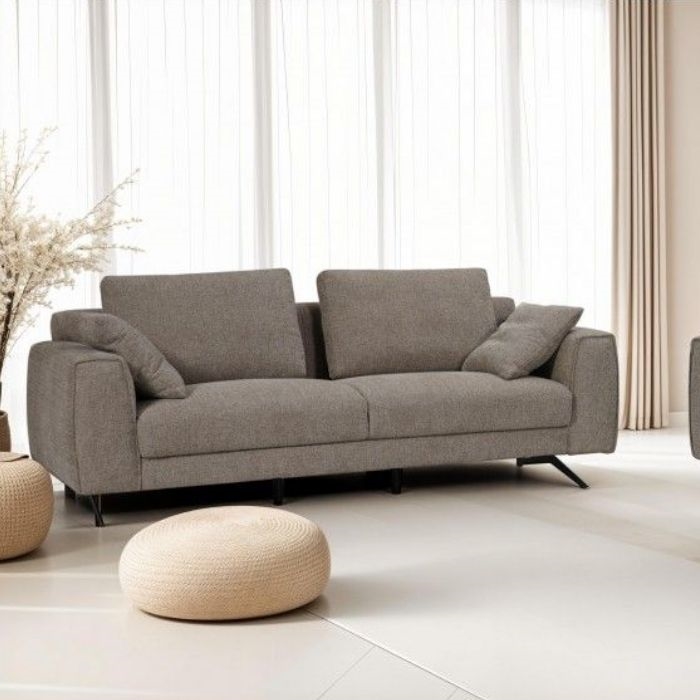 Den brune farve giver sofaen et varmt og naturligt udtryk, som passer smukt ind i både moderne, nordiske og klassiske boligmiljøer. Farven skaber en hyggelig atmosfære, mens de rene linjer og det minimalistiske formsprog giver et elegant helhedsindtryk. De sorte metalben løfter sofaen visuelt og tilfører et let industrielt strejf, der skaber en flot kontrast til det bløde tekstil.