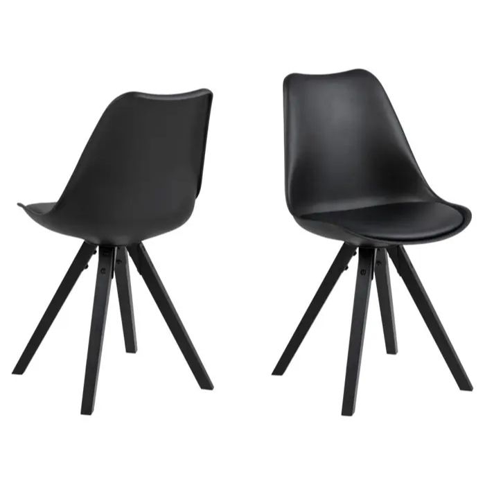 Dima Spisebordsstol er designet med fokus på moderne æstetik og robusthed. Stolen er polstret med en kombination af PU i sort  og mat sort ru polypropylen, hvilket giver et stilrent og holdbart udtryk, der passer perfekt ind i enhver spisestue.