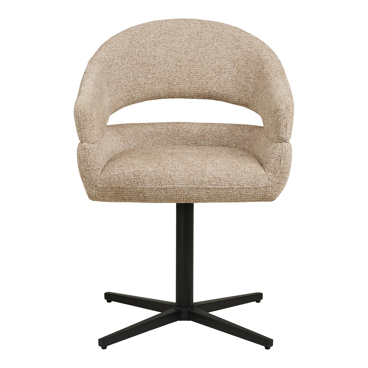 Dover spisebordsstol i sand meleret med sorte stålben er et moderne og funktionelt valg til spiseområdet, hvor både komfort og bevægelighed er i fokus. Det lyse, melerede betræk giver stolen et elegant og roligt udtryk, mens de sorte ben tilfører et markant, nutidigt præg. Med 180 graders drejefunktion og automatisk returmekanisme er stolen skabt til en fleksibel og bekvem hverdag omkring spisebordet.