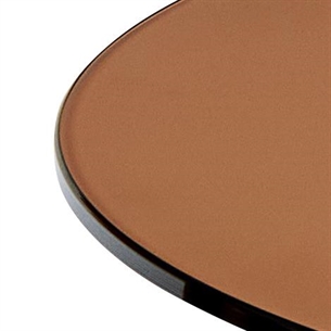Den runde bordplade i hærdet glas har en smuk brun tone, som giver bordet et varmt og eksklusivt udtryk. Glasoverfladen er slidstærk og nem at rengøre, hvilket gør sofabordet velegnet til daglig brug. Det let transparente look bidrager til et luftigt udtryk i indretningen.