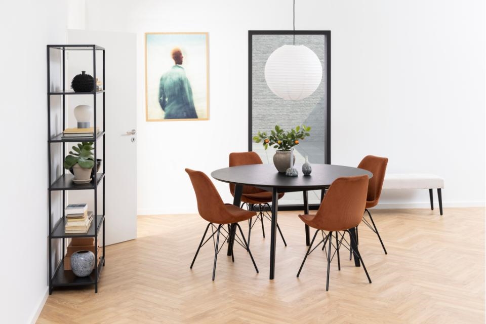Eris Spisebordsstol – Kobber Wind Stof, Sort Stålstel