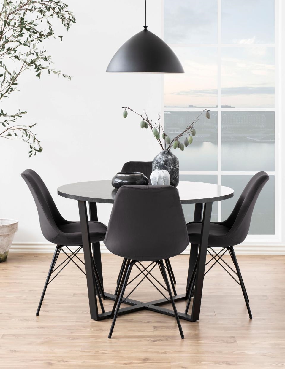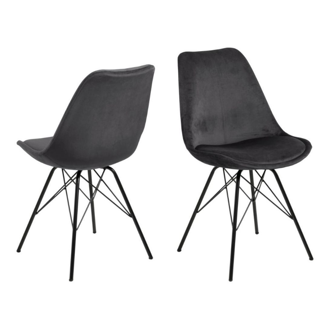 Den mørkegrå farve gør Eris spisebordsstolen til et sikkert valg, der passer ind i de fleste hjem. Den fungerer perfekt sammen med både træborde, metal og mere minimalistiske indretninger.