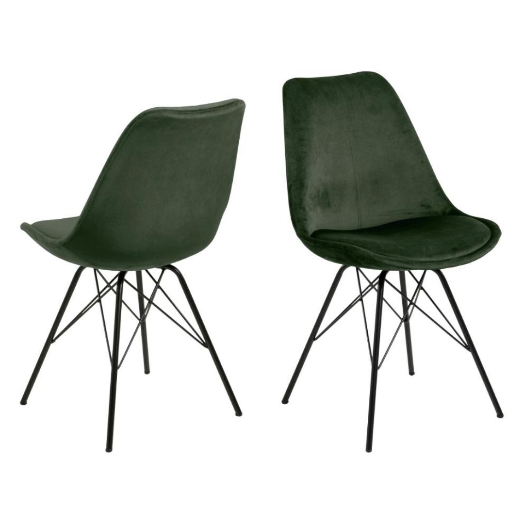 Eris spisebordsstol i skovgrønt Vic stof er en elegant og moderne stol, der kombinerer komfort med et eksklusivt og levende design. Den dybe grønne farve og det bløde velourlook tilfører karakter og varme til din spiseplads.