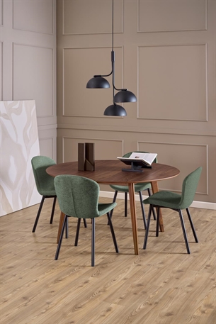 Med sit enkle og tidløse design passer Esra spisebordsstol perfekt til både spisebordet og som ekstra siddeplads i hjemmekontoret eller entréen. Den grønne nuance tilfører varme til rummet og kan kombineres med både lyse og mørke farvetoner.