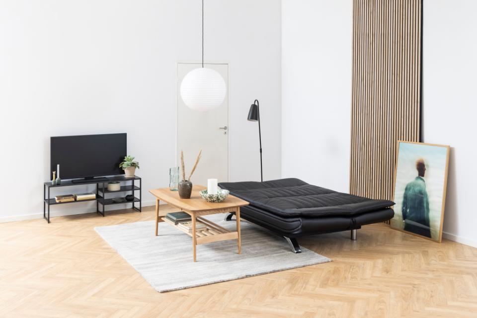 Den sorte farve gør det nemt at matche sofaen med alt fra naturlige trætoner til farverige puder, tæpper og dekorative elementer.