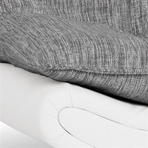 Sovesofaen er betrukket med Porter stof i en lys grå nuance kombineret med detaljer i hvid PU, som giver et moderne og kontrastfuldt udtryk. Stoffet er behageligt og indbydende, mens PU-materialet er nemt at rengøre og vedligeholde.