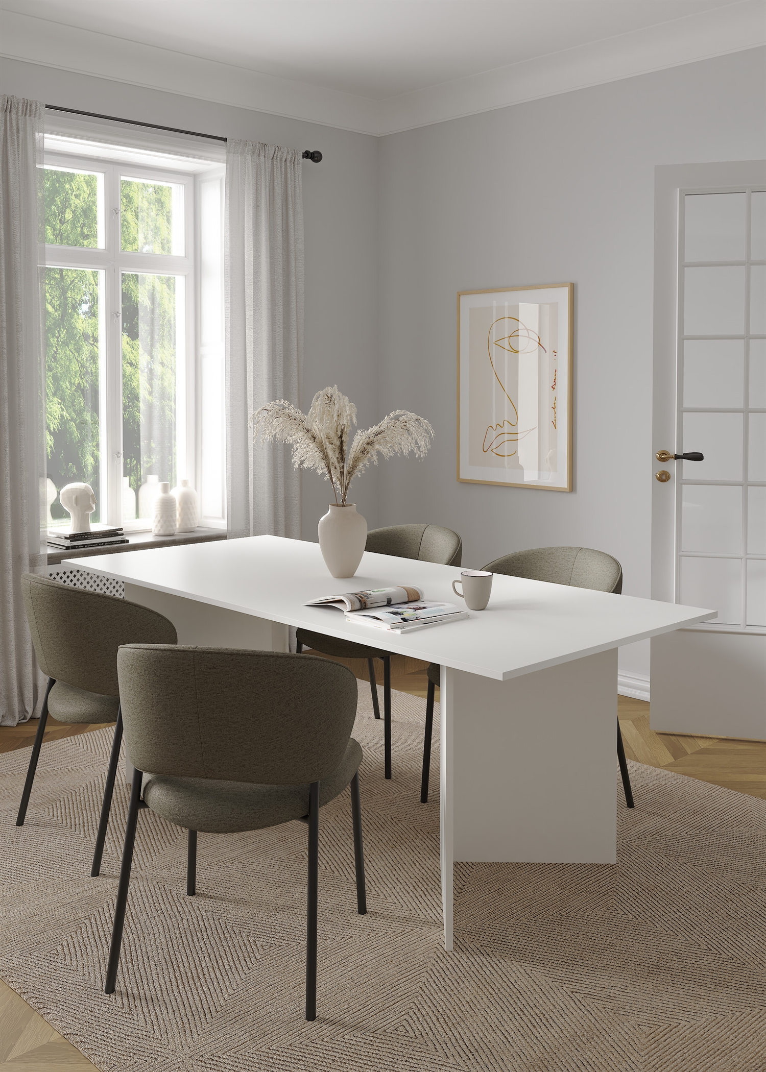 Det minimalistiske design gør Family spisebordet nemt at kombinere med forskellige typer spisebordsstole, uanset om du foretrækker træ, stof eller metal. Den hvide farve skaber en lys og harmonisk atmosfære og gør bordet til et naturligt midtpunkt i spiseområdet.