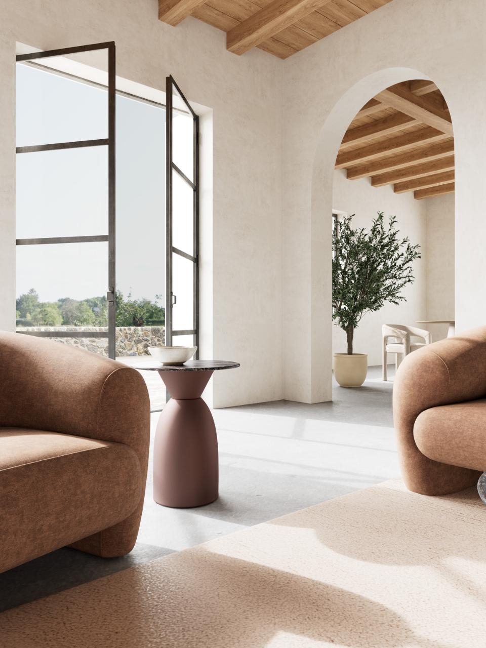 Den runde form skaber et blødt og harmonisk udtryk i indretningen.