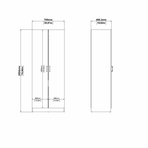 Den smalle bredde gør garderoben velegnet til rum, hvor der ikke er plads til store garderobeløsninger, men hvor der stadig er behov for funktionel opbevaring.