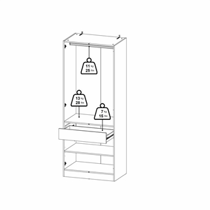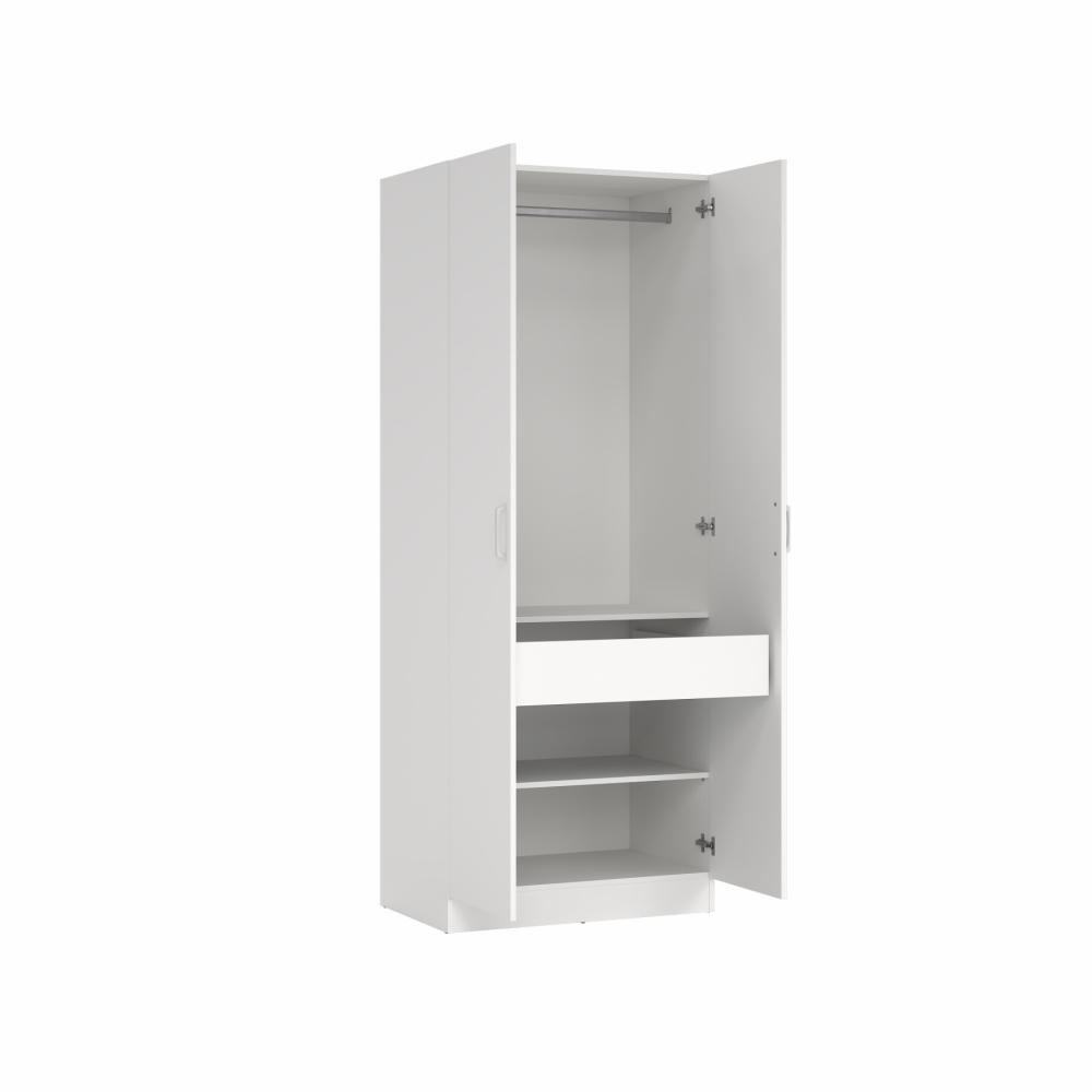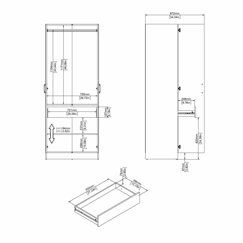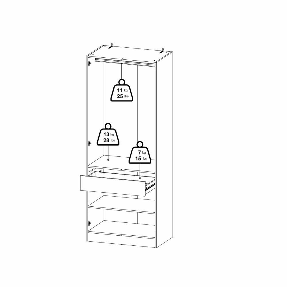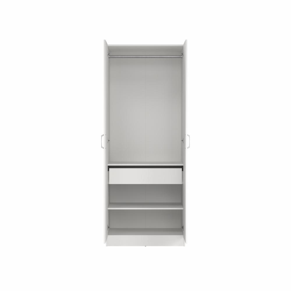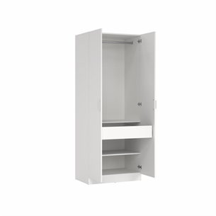 Denne Focus garderobe er indrettet med to døre og en praktisk skuffe, som tilsammen giver gode muligheder for at organisere tøj og tilbehør. Skuffen er ideel til mindre genstande som undertøj, accessories eller andre ting, du gerne vil have samlet og let tilgængelige.