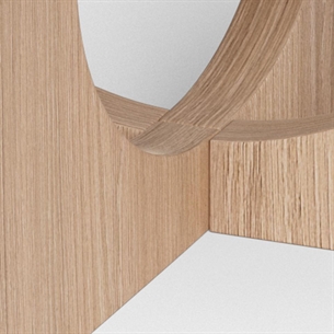 Det karakteristiske krydsstel i hvidpigmenteret olieret egefiner skaber et let og arkitektonisk udtryk. Stellet bidrager til bordets stabilitet og giver samtidig et nordisk præg, som gør bordet nemt at kombinere med forskellige indretningsstile.