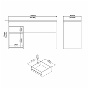 Skrivebordet er indrettet med en praktisk skuffe samt et lukket skab med låge, hvilket giver gode muligheder for at opbevare dokumenter, kontorartikler og andre nødvendigheder. Den lukkede opbevaring hjælper med at holde arbejdsområdet ryddeligt og organiseret.