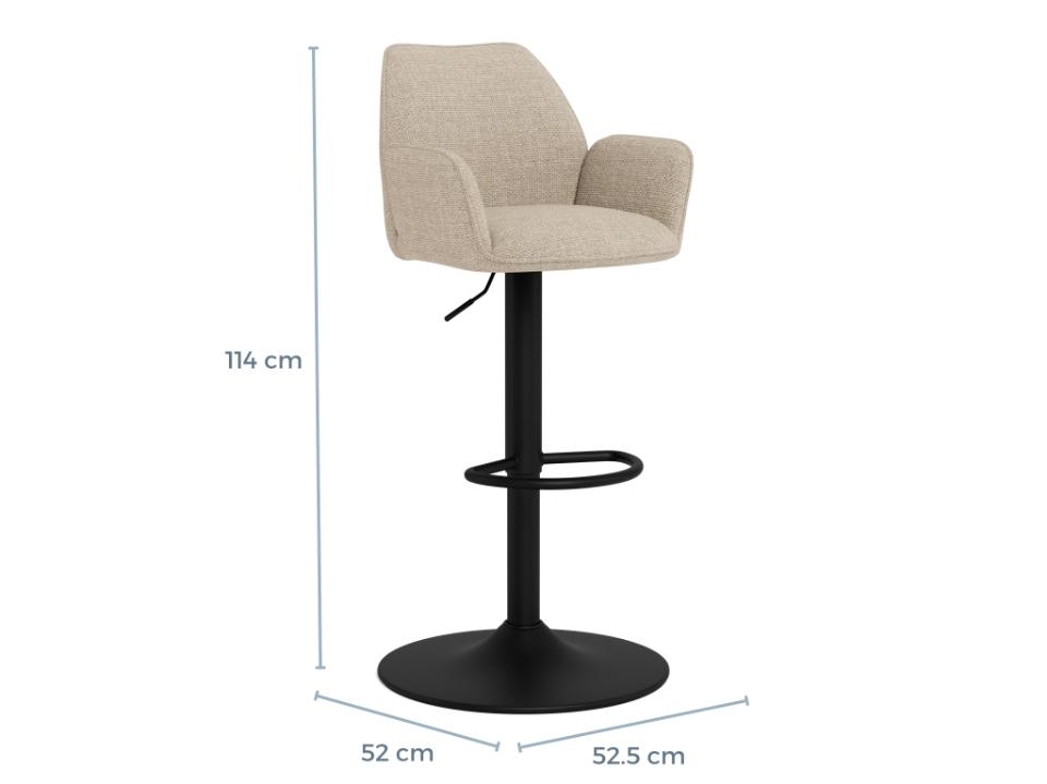Glenda barstol i beige Basel stof med armlæn er en elegant og funktionel barstol, der kombinerer moderne design med høj komfort. Med drejefunktion, justerbar højde og praktiske detaljer er denne barstol ideel til både køkkenø og barområde.
